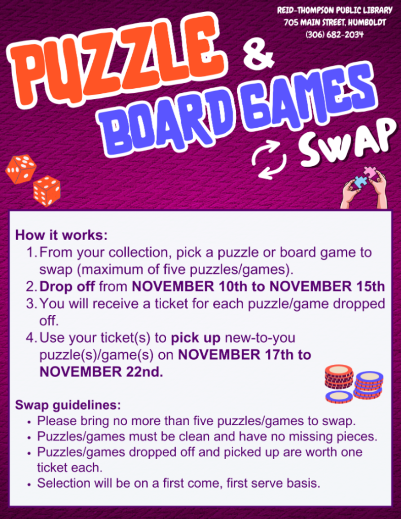 Reid-Thompson Public Library's Puzzle and Board Games Swap is back!