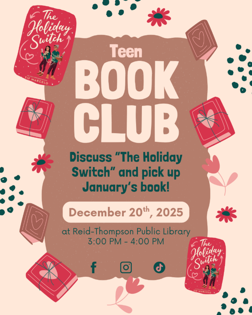 Calling all young readers in grades 9 and 10: Reid-Thompson Public Library will be having another Teen Book Club meeting on December 20th at 3:00PM!