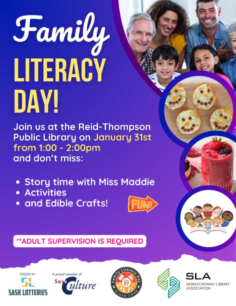 Did you know that lots of learning happens around mealtime? That's the theme of this year's Family Literacy Day, and we have a fun-packed hour to celebrate! We will enjoy few stories with Miss Maddie, followed by mealtime-themed learning activities and EDIBLE crafts (FUN!!!!). They will learn how to prepare their own snack (win-win!)