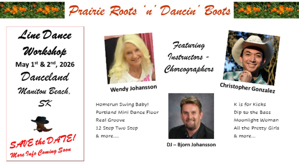 Prairie Roots N Dancin' Boots will be back with line dancing on the famous horsehair dance floor at Danceland in Manitou Beach SK.