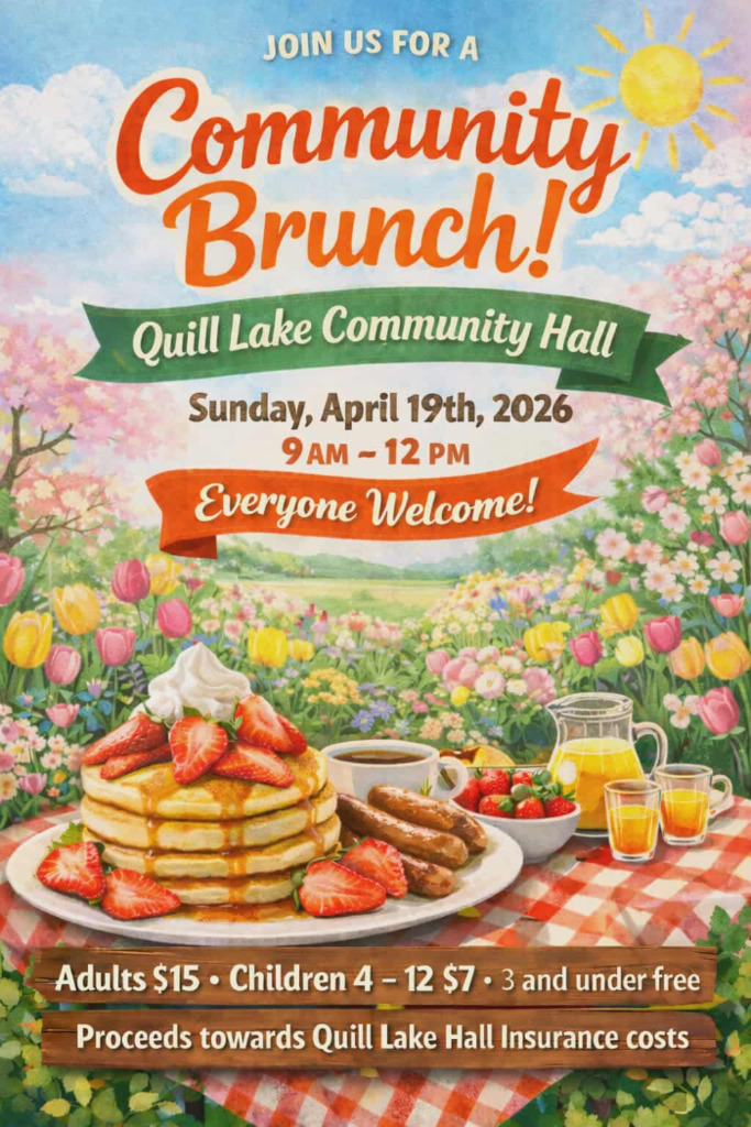 Please come and join the Quill Lake Community club for our brunch on April 19th from 9:00-12:00.