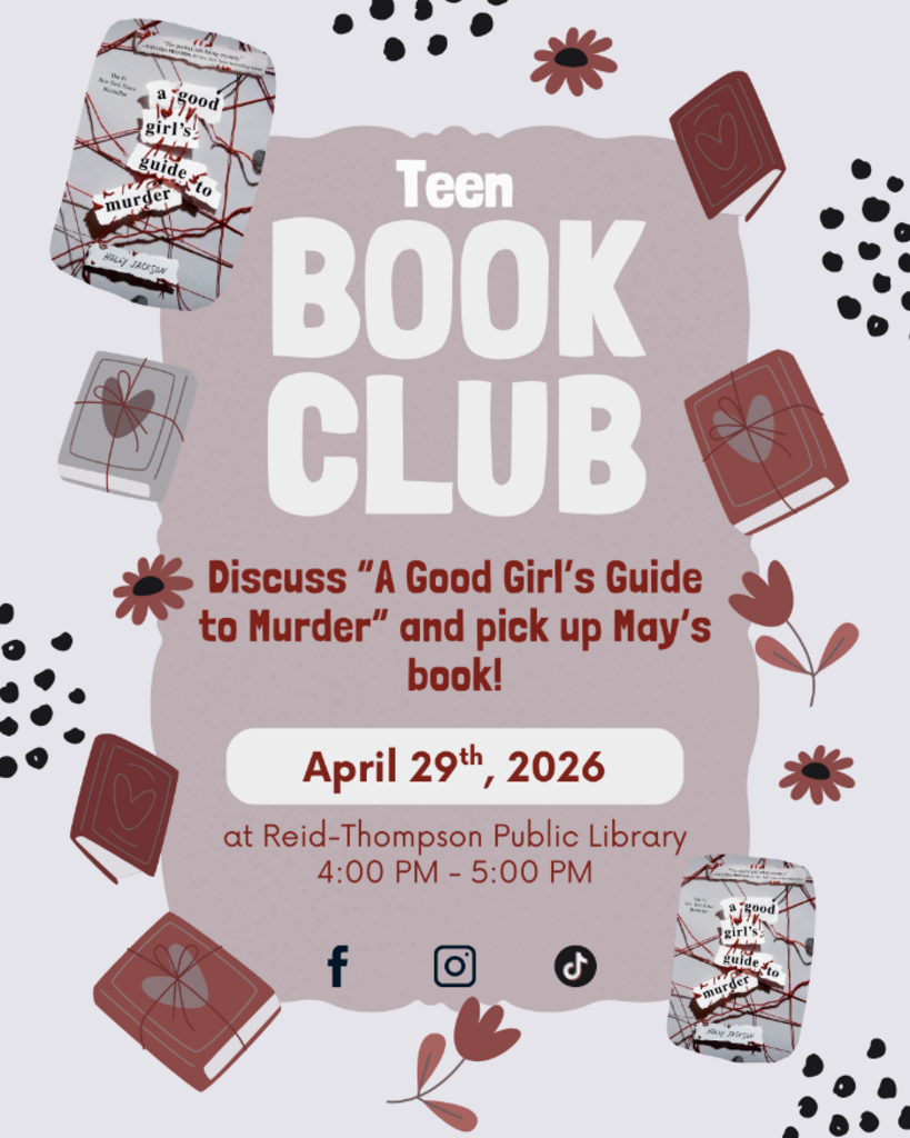 Reid-Thompson Public Library invites all teen readers to join their Teen Book Club on their next read!